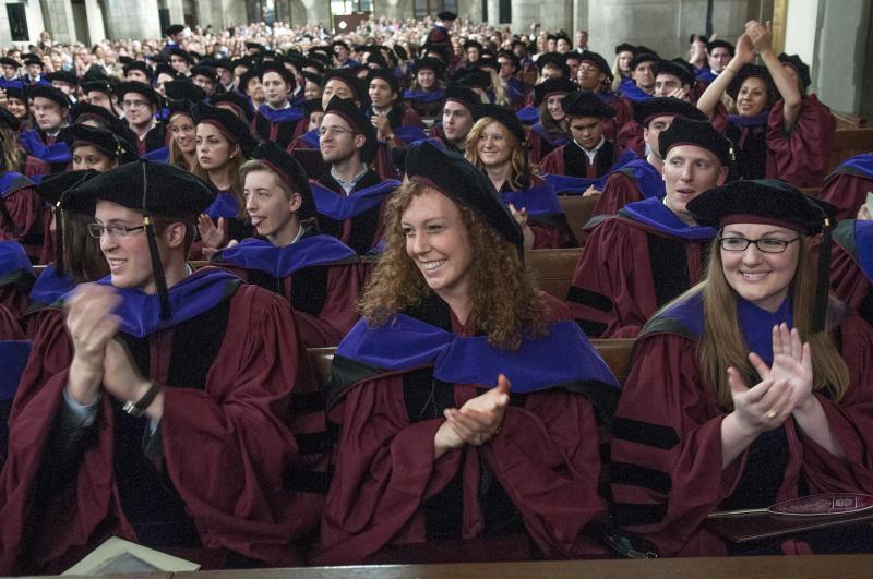 The law graduates moved to Rockefeller Chapel for their hooding ceremony.